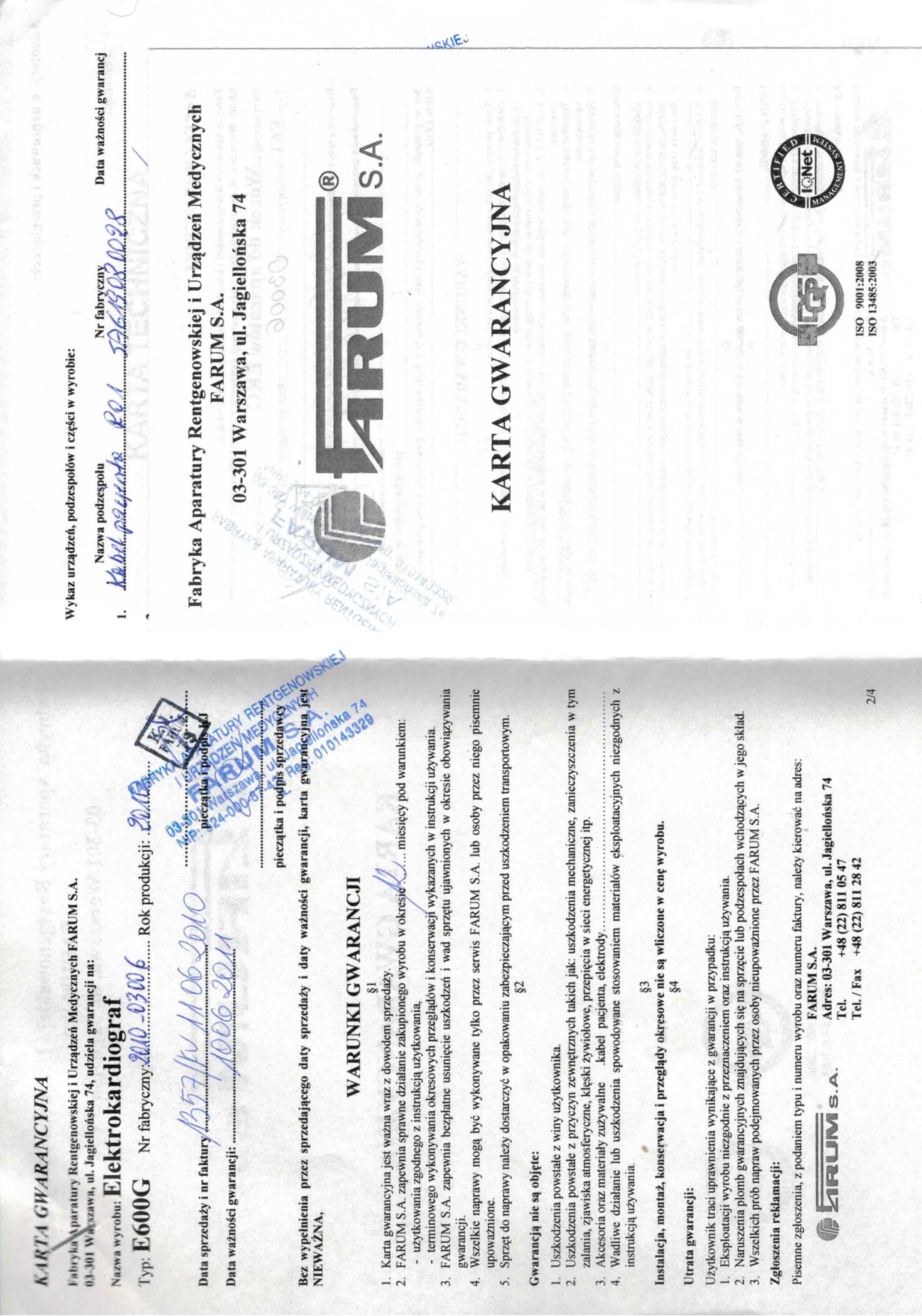 1) EKG FARUM E600Gi 3,6,12 Kanałów INTERPRETACJA LE60-6201-060-7+ WÓZEK DO EKG E60,E600 2010 rok z nowym kablem 2016 rok – 2.500 zł